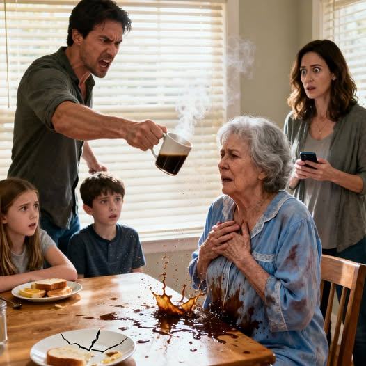 Mabel dekte zorgvuldig de tafel en de eerste hulp. Laya kwam als eerste naar beneden, een invaller in haar badjas, haar ogen strak op haar telefoon gericht. Het eten was nauwelijks geserveerd toen Mabel « goedemorgen » zei. De kinderen volgden, luisterden en kletsten zachtjes. Toen kwam Derek – lang, breedgeschouderd, zijn gezicht in die ongeduldige uitdrukking waar ze zo bang voor was. Zonder een woord te zeggen, schonk hij zichzelf een pauze in en begon te eten.