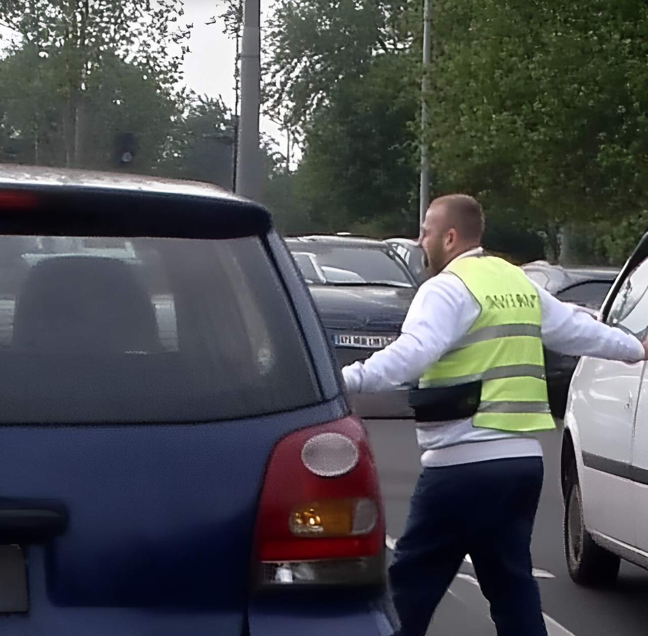 Terwijl de hulpverleners probeerden door het verkeer heen te komen, merkte de man de naderende ambulance niet op en weigerde hij zich verplaatsen. In de ambulance lag een jonge man in kritieke toestand, die dringend naar het ziekenhuis moest worden gebracht.