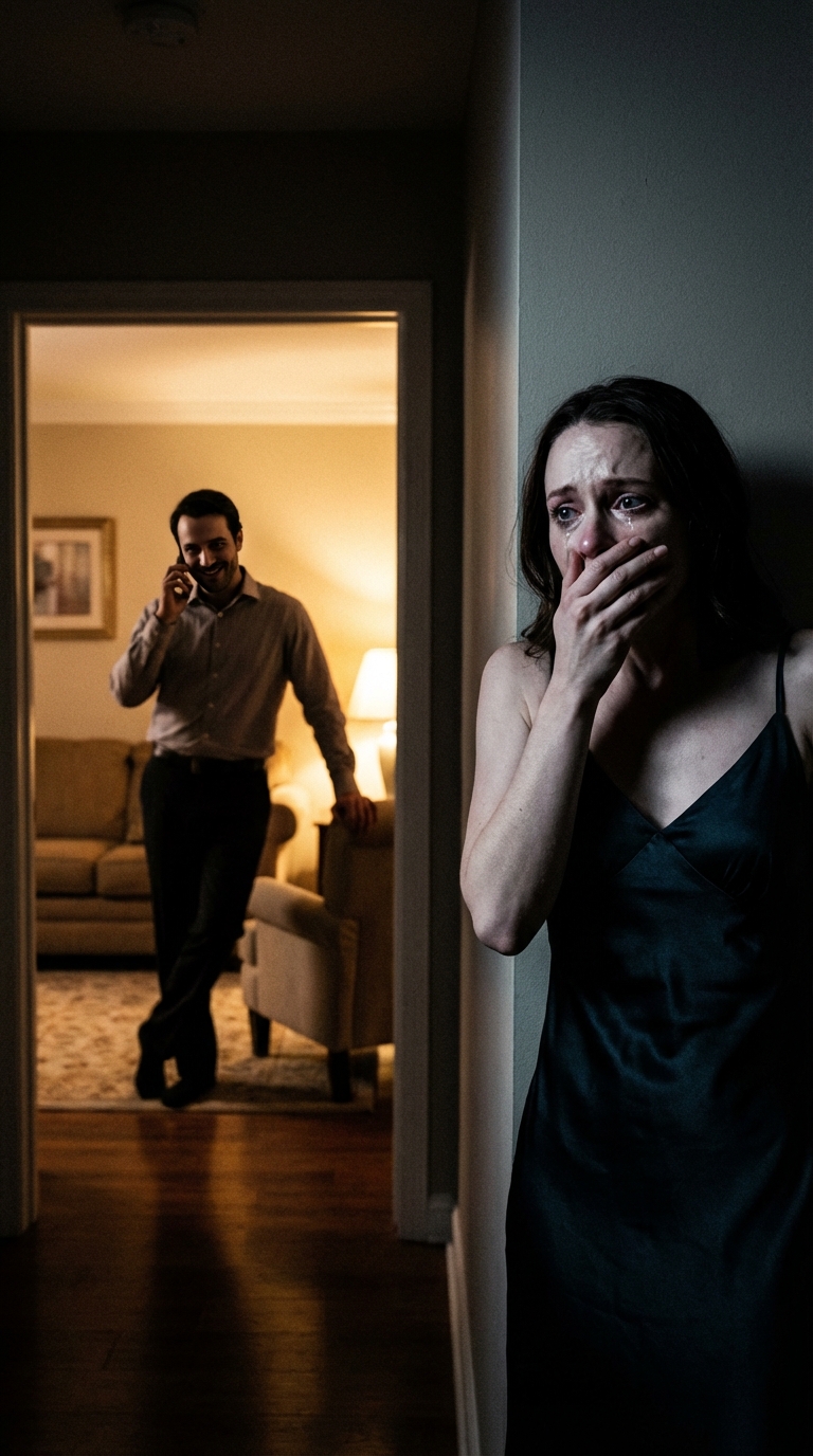 Ik greep Megans arm en trok haar mee de schaduwrijke hoek van de gang in, weg van de huiselijke warmte van de keuken. Ik hield mijn stem laag, een schorre fluistering die door mijn keel schuurde.