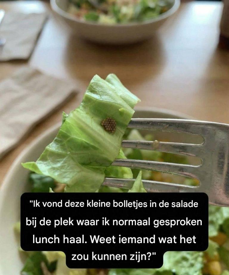 Het begon als een gewone lunch op een doordeweekse dag. Ik at een simpele salade van een plek waar ik vaak kom — vertrouwd, handig en betrouwbaar. Niets aan de maaltijd voelde ongewoon aan, totdat ik mijn vork optilde voor de volgende hap en iets kleins aan een blaadje sla zag kleven.