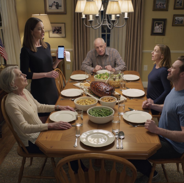 Moeder kwam uit de keuken met een schaal perfect gesneden gebraden vlees, haar gezicht stralend van de geforceerde vrolijkheid die ze in de loop der jaren had geperfectioneerd. « Ik dacht dat we een gezellig familiediner konden hebben en praten over de toekomst. We hebben de afgelopen jaren allemaal zoveel meegemaakt. »