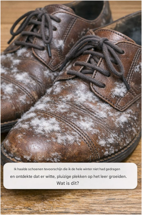 Je opent de kast, grijpt naar een paar van je favoriete schoenen die je de hele winter niet hebt gedragen, en—bah. Er zijn witte, pluizige plekken op het leer verschenen. Ze lijken wel te leven. Ze waren er absoluut niet toen je de schoenen opborg.