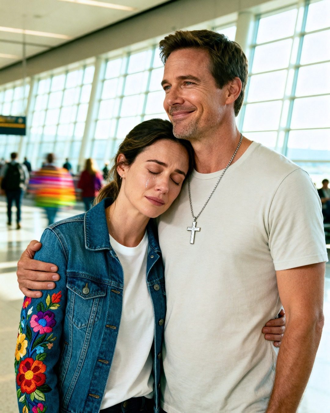 Mensen haastten zich met rolkoffers en bezorgde gezichten langs ons heen, maar op dat moment leek de wereld zich te hebben verkleind tot slechts wij tweeën.