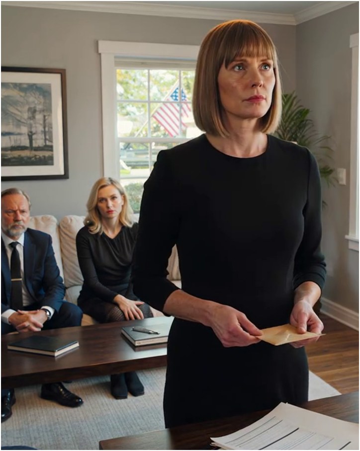 Ryan, mijn man, zat met zijn benen over elkaar op de bank alsof hij de eigenaar van het huis was. Lisa zat naast hem, haar handtas op haar schoot, rechtop en alert – bijna tevreden. Tegenover hen, in de fauteuil bij het raam waar Margaret vroeger met haar thee zat, zat een man die ik nog nooit eerder had gezien. Hij droeg een grijs pak dat er te formeel uitzag voor een huis dat nog steeds vaag naar ontsmettingsdoekjes en Margarets lavendelzeep rook.