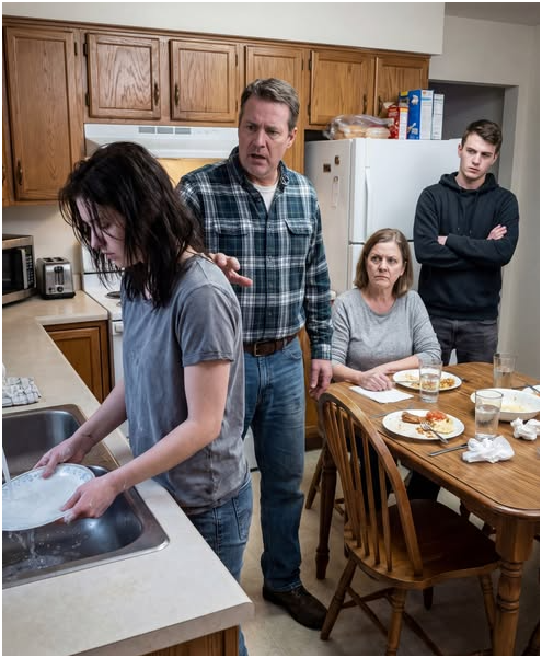 Mijn dochter bleef de afwas doen.