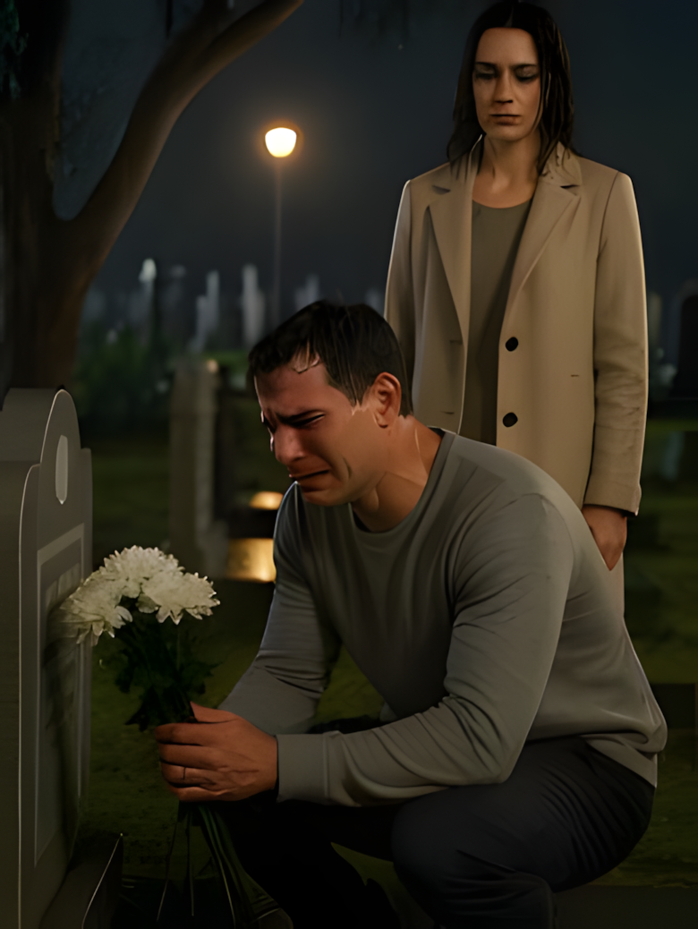 De stilte van de begraafplaats omhulde ons. Ik voelde een vreemde verbondenheid, alsof het verdriet van twee vreemden elkaar toevallig had ontmoet.