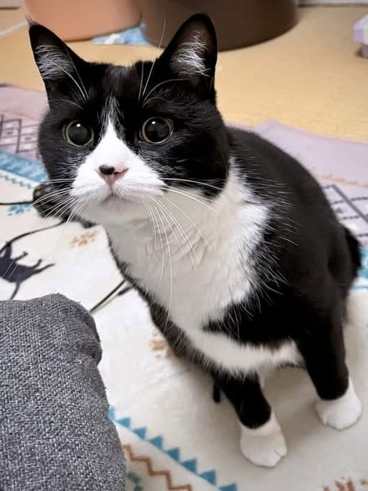 De zwart-witte kat wachtte al op hem en sprong meteen van de bank af, waar ze de hele dag rustig had gelegen terwijl haar eigenaar weg was. Ze zwaaide trots met haar staart en liep naar Makar toe om hem te begroeten.