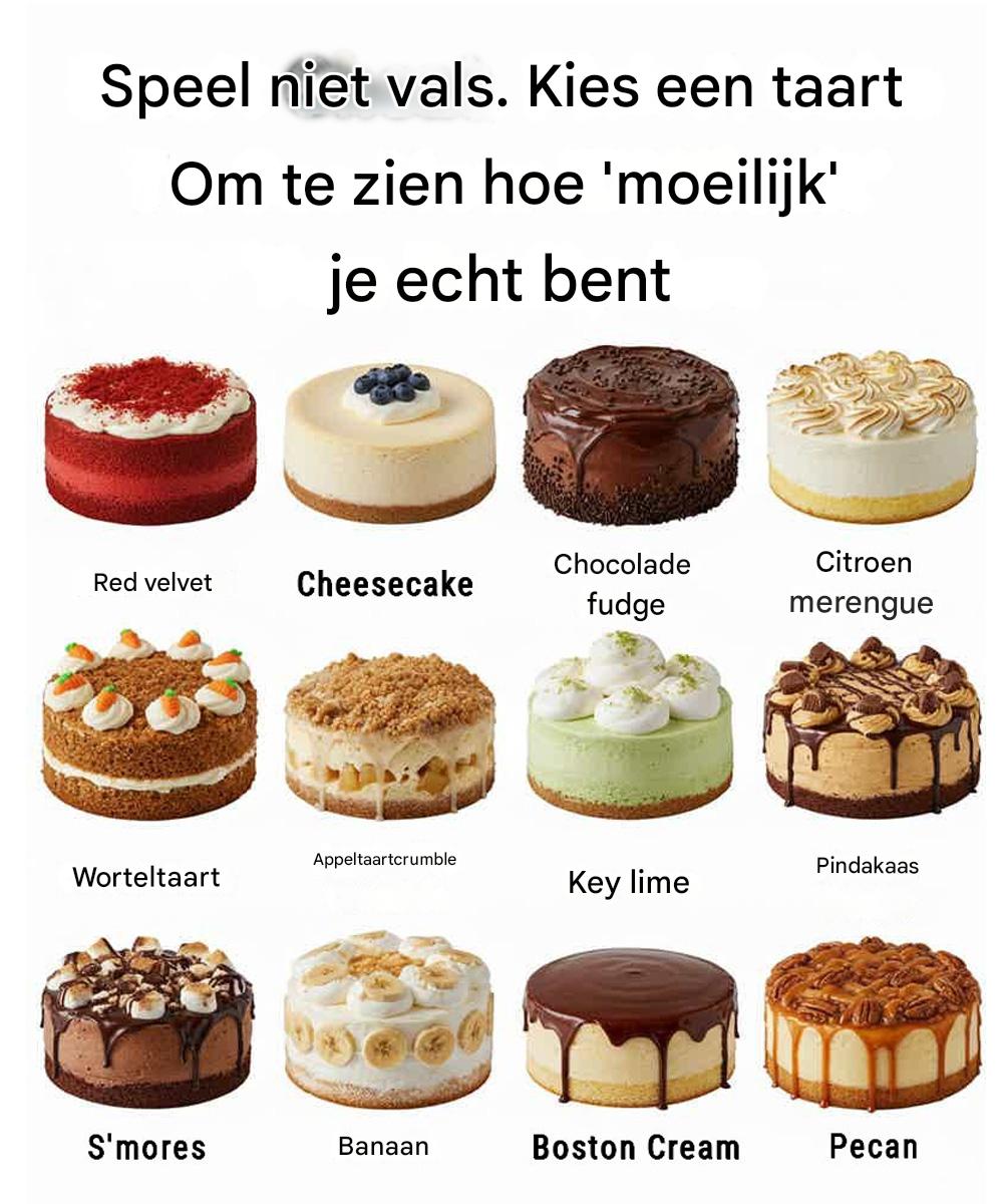 Kies een taart om te zien hoe ‘moeilijk’ je werkelijk bent