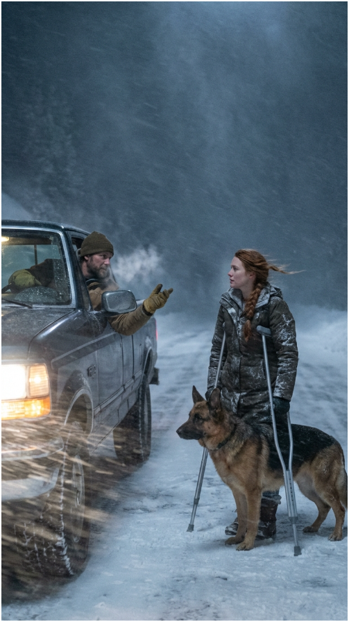 De weg boog scherp af vlakbij een groep ponderosa-dennen, hun stammen zwart afstekend tegen de witte waas, en Mason minderde vaart met zijn truck, zijn vingers licht op het stuur, zijn zintuigen automatisch verscherpend naarmate de storm heviger werd, toen iets voor hem de geometrie van de sneeuw verstoorde, een vorm te verticaal voor een gevallen tak, te doelbewust voor een dier, en hij boog zich iets voorover, zijn blik vernauwend, want in zijn wereld zijn afwijkingen zelden goedaardig.