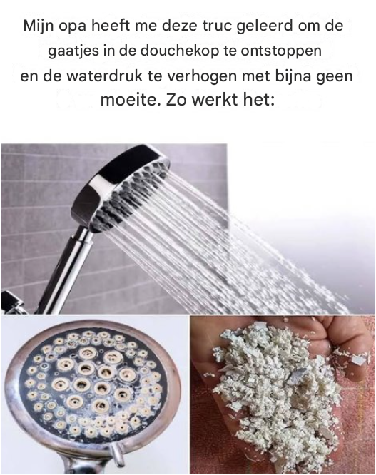Als u in een gebied met hard water woont, hopen mineralen zoals calcium en magnesium zich geleidelijk op in de kleine sproeiers van uw douchekop. Deze ophoping beperkt de waterdoorvoer.