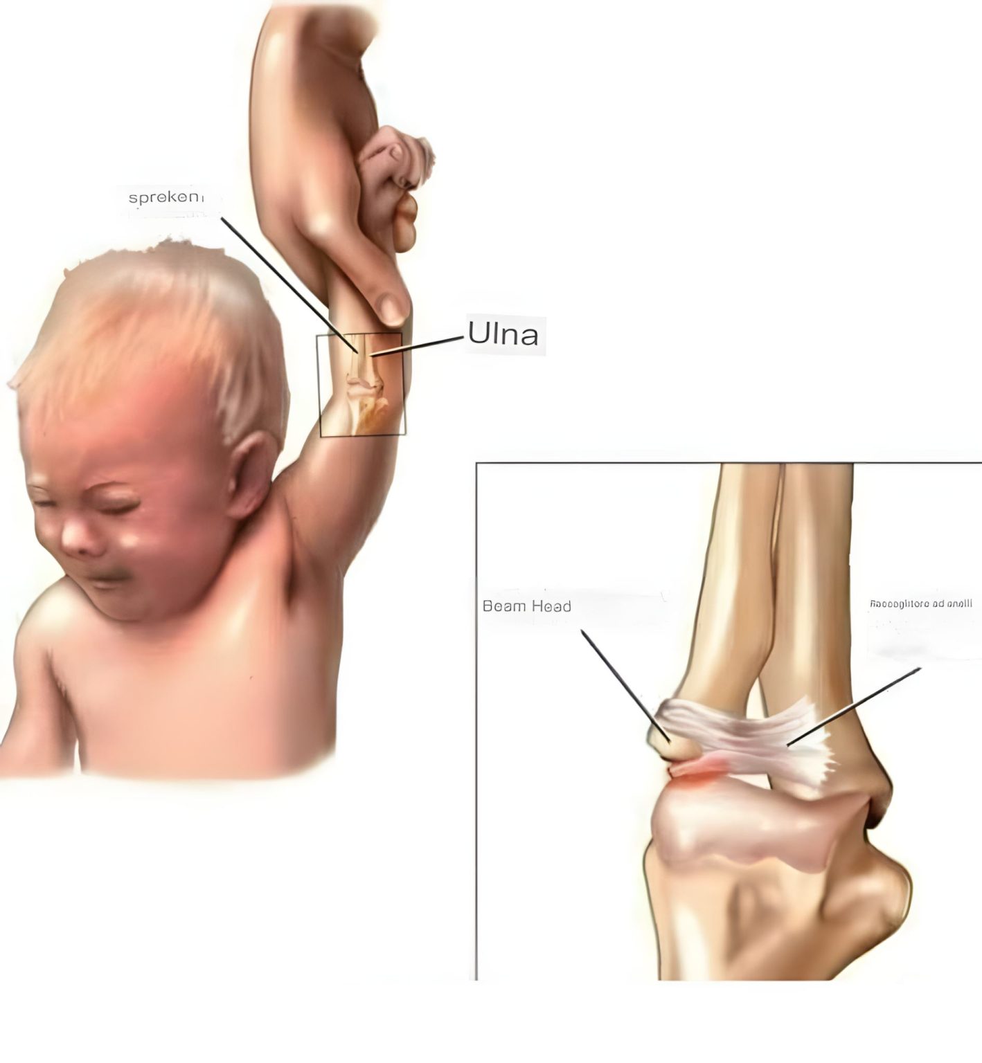 De medische term voor dit letsel is een subluxatie van de radiuskop. Het treedt op wanneer de kop van het spaakbeen (radius) gedeeltelijk uit het gewricht raakt, vaak doordat er plotselinge trek wordt uitgeoefend op een gestrekte arm. Dit gebeurt bijvoorbeeld bij het: