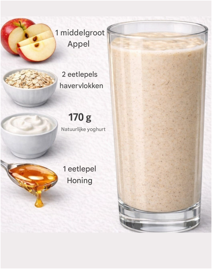 Het combineert natuurlijke zoetheid, romigheid en voedzame ingrediënten tot een maaltijd die zowel verfrissend als voedzaam is. Dankzij de vezels uit de appel en havermout en de eiwitten uit de yoghurt zorgt dit gerecht voor een goed verzadigd gevoel zonder zwaar te zijn.