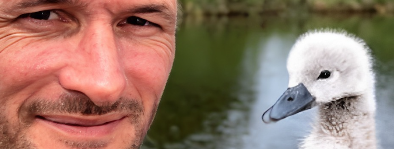 Op een dag, terwijl Rob met zijn kajak over de rivier peddelde, merkte hij een eenzaam en hulpeloos kuiken op. Het jonge zwaantje zat op een boomstronk, bedekt met dons, en zag er verkleumd en uitgeput uit. Het had niet eens genoeg kracht om te bewegen.