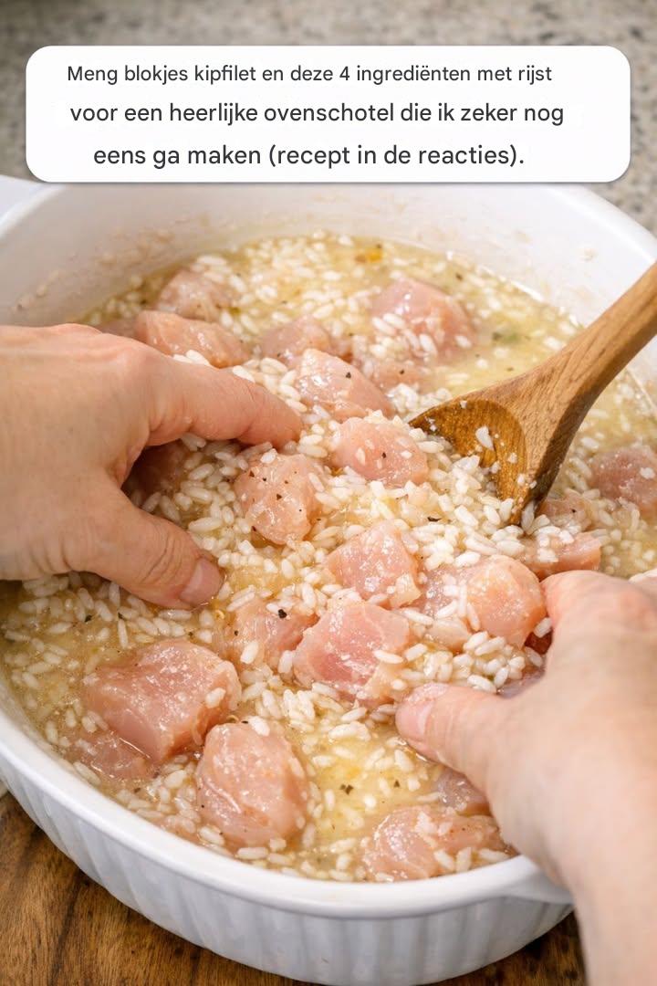 In boerenkeukens in het hele Middenwesten is er altijd wel een variant van "kip met rijst uit één pan" te vinden, die opduikt op drukke avonden, bij kerkelijke maaltijden en na lange dagen op het land. Deze simpele ovenschotel is daar een perfect voorbeeld van: slechts vijf ingrediënten, ongekookte rijst en een bereidingswijze waarbij je de keuken kunt opruimen of even kunt ontspannen terwijl het avondeten zichzelf klaarmaakt. Het is het soort gerecht dat je maakt als je zin hebt in iets eerlijks en voedzaams, zoals onze moeders en grootmoeders het vroeger deden: één pan, geen gedoe, genoeg voor iedereen en restjes die de volgende dag nog net zo lekker smaken.