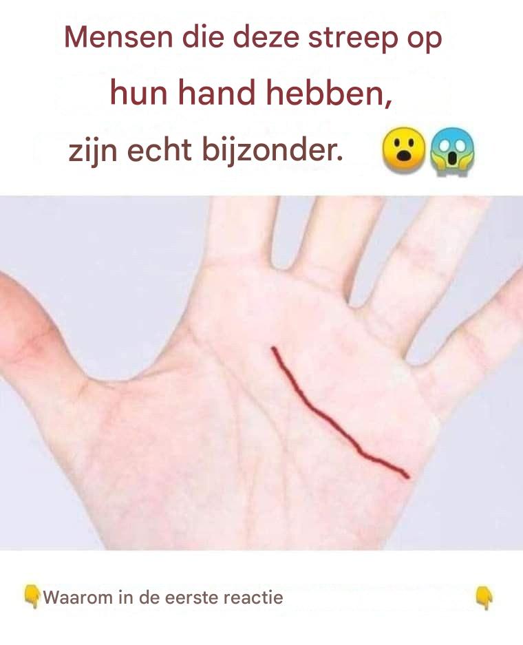 Neem even de tijd om deze lijn op je hand te bekijken: Is je haar lang, steil en goed gedefinieerd? Een prachtig en lang liefdesverhaal wacht op je (of is al gaande).