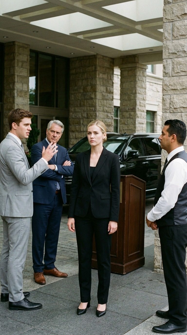 Mijn broer zat nog steeds te lachen met zijn baas toen ik bij de valet-balie mijn hand uitstak voor mijn sleutels – en hij grapte, hard genoeg zodat iedereen het kon horen, dat ik « hier werkte ». Toen kwam de valet-manager tussenbeide, nam een militaire houding aan en zei één zin die alle glimlachen in paniek deed omslaan: « Admiraal… uw chauffeur wacht. »
