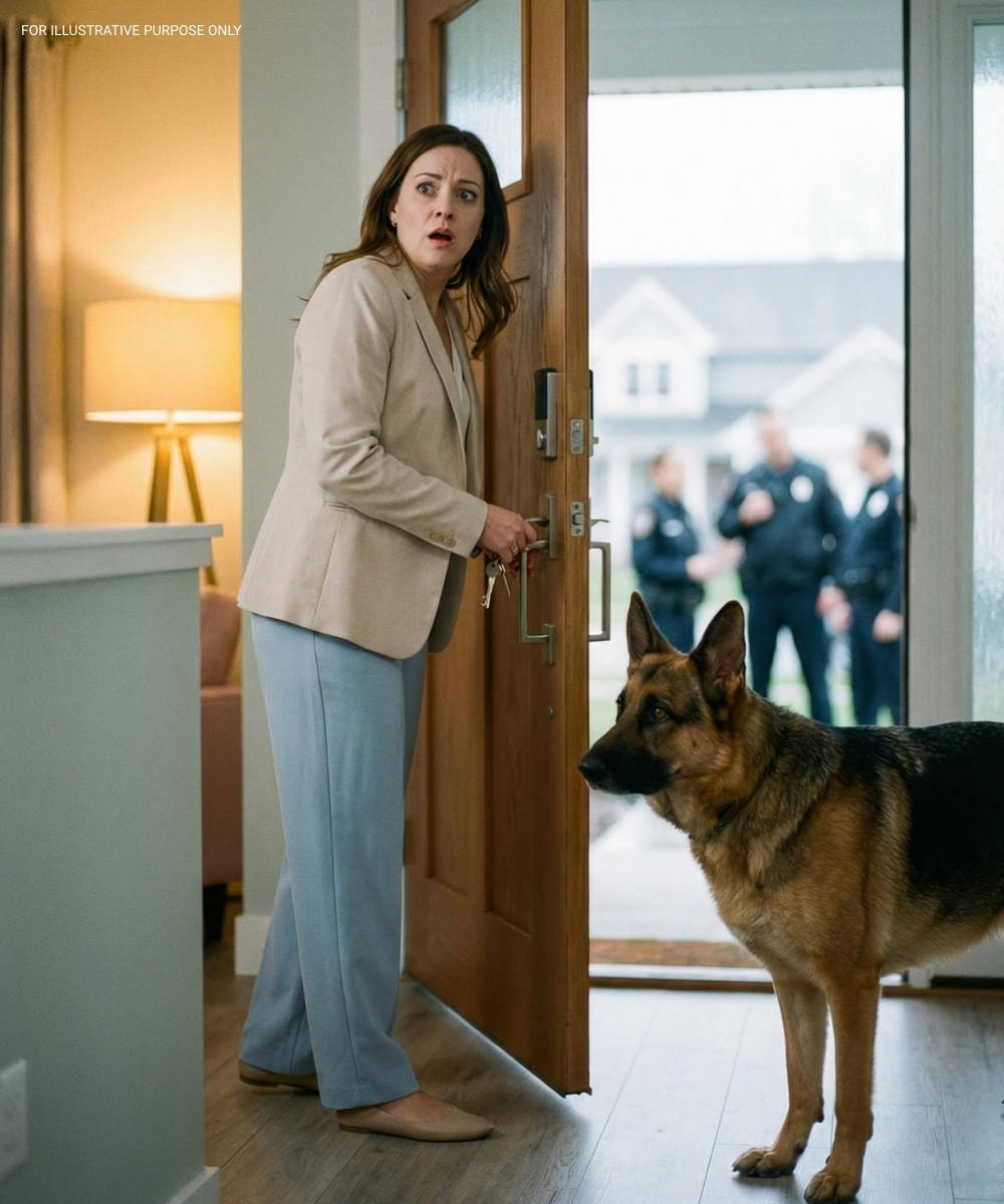 In plaats daarvan stond Ranger stijf voor de deur, starend door het glas. Zijn lichaam was gespannen, zijn hoofd zakte. Toen gromde hij – een diep, stabiel geluid dat ik nog nooit van hem had gehoord.