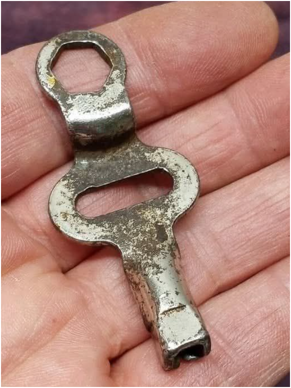 Voordat klokken op batterijen gangbaar werden, moesten de meeste huishoudklokken – vooral schoorsteenklokken, wandklokken en staande klokken – met de hand worden opgewonden. Dat gebeurde meestal eenmaal per dag of eenmaal per week met een klein metalen sleuteltje zoals dit.