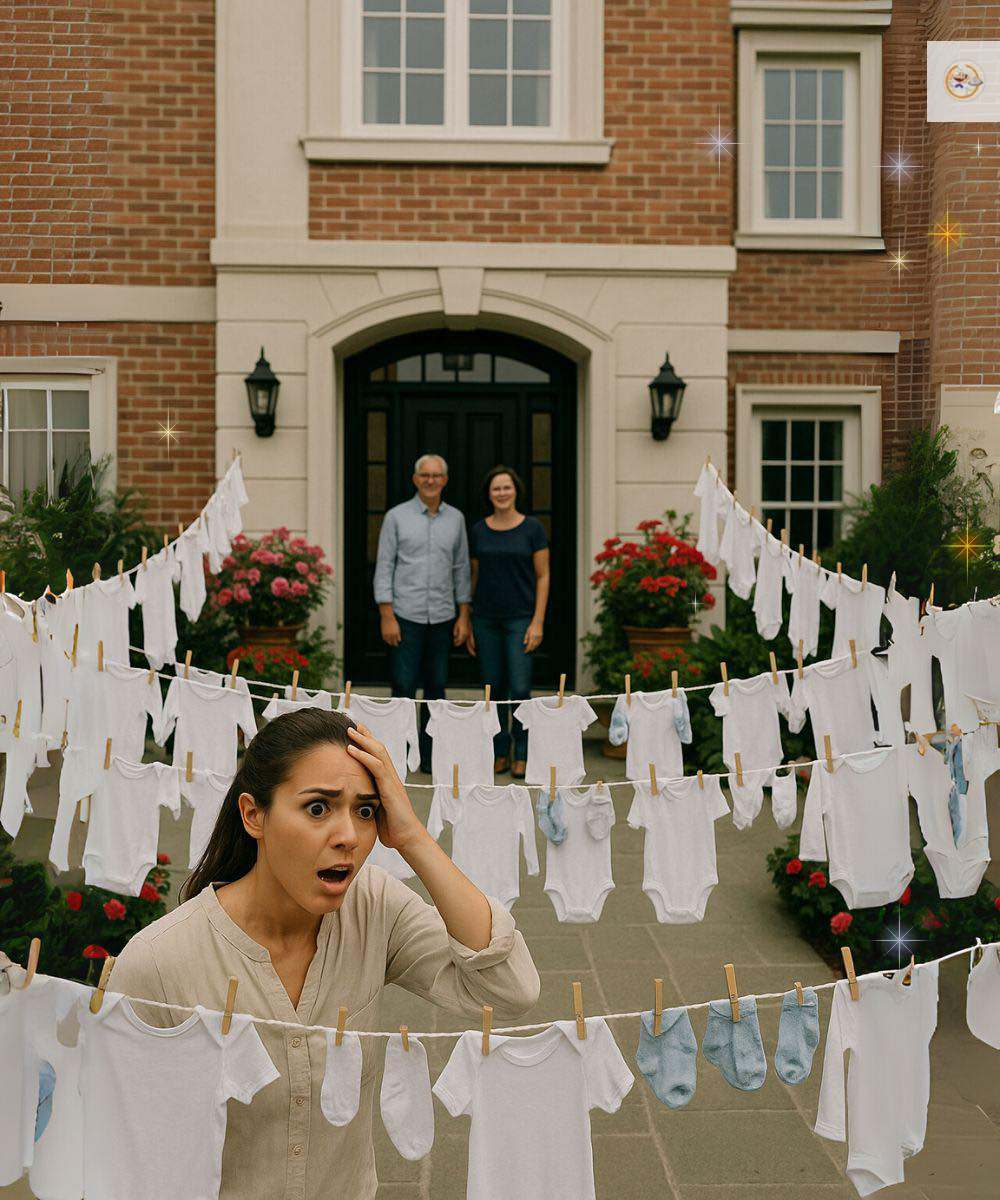 Mijn man was op zakenreis, maar toen ik mijn schoonouders bezocht, schrok ik ervan dat er overal in de tuin babyluiers hingen.