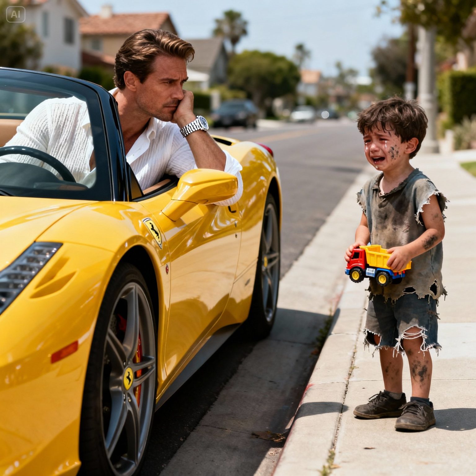 De stem was niet die van een straatverkoper, noch die van een kind dat uit gewoonte om geld bedelt. Het was een kreet van wanhoop. Een jongetje, amper vijf jaar oud, met een gezicht vol stof en tranen, bonkte met zijn kleine handjes op het raam van een gele Ferrari die voor een stoplicht in het centrum van Mexico-Stad stond te wachten. Snot plakte aan zijn lip, zijn bruine ogen waren opgezwollen van het huilen en hij klemde een oud, verbleekt blauw speelgoedautootje tegen zijn borst, alsof dat kleine stukje plastic zijn laatste houvast was.