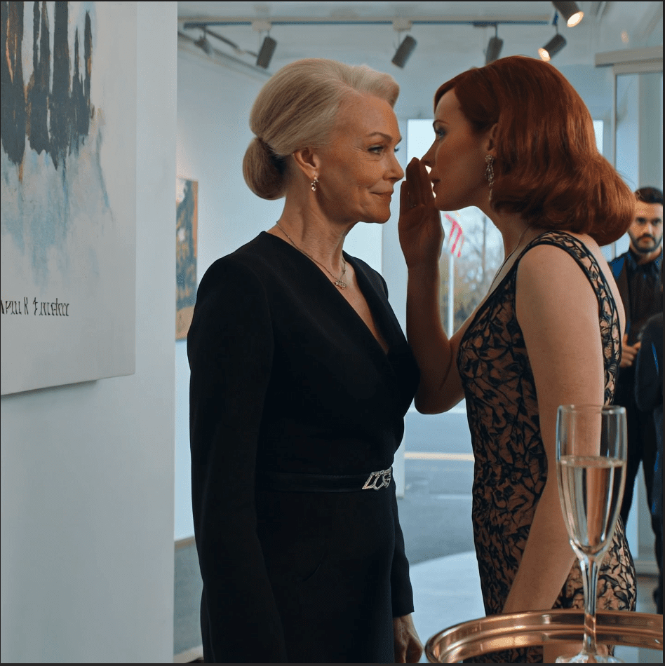 “Michael heeft je uitgenodigd omdat hij zich daartoe verplicht voelde. Omdat je zijn moeder bent en hij een goede zoon is. Maar de realiteit is dat je er niet bij past. Je kent deze mensen niet. Je begrijpt niets van hedendaagse kunst. Je hebt niet de juiste achtergrond of connecties. En eerlijk gezegd maak je mensen ongemakkelijk.”