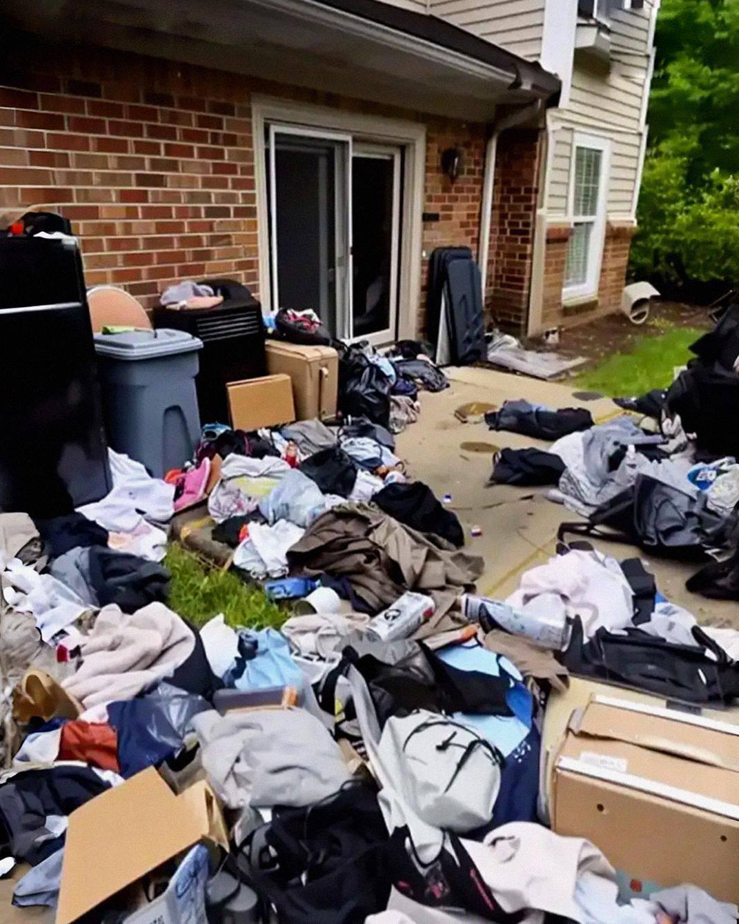 « Haal je spullen van MIJN gazon af voordat ik de politie bel! » Nadat mijn vader was overleden, gooide mijn stiefdochter al mijn familiebezittingen op het gazon, bewerend dat ze het huis had geërfd! Een paar minuten later arriveerde mijn zoon en werd ze hard getroffen door karma.