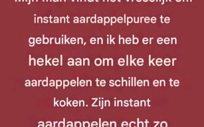 Ik sloot de app af, waste mijn kom af, droogde de tafel en toen trilde mijn telefoon. Victoria’s bericht: Vergeet niet de restjes in de koelkast op te warmen. Laat ze niet verloren gaan.