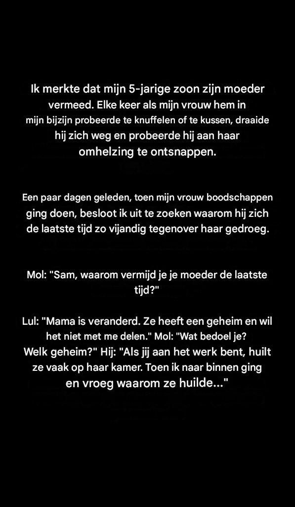 Sams reactie was onverwacht en verontrustend. "Mama is veranderd. Ze heeft een geheim en wil het niet met mij delen," zei hij, zijn kleine gezicht donker van verwarring en pijn.