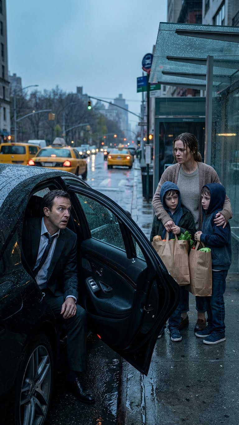 Een miljardair-CEO ziet zijn ex-vriendin met drie kinderen op een Uber wachten – alle drie sprekend op hem.