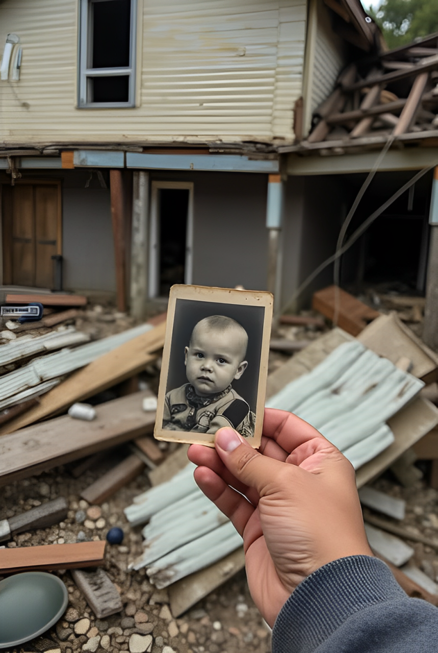 Miljonair sloopt het huis van een oude man en vindt plotseling zijn jeugdfoto tussen het puin