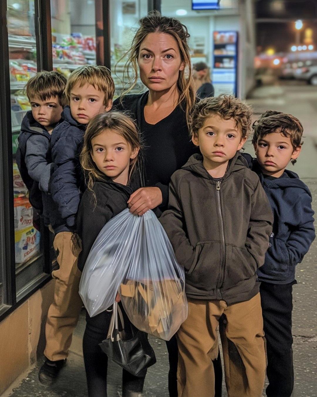 Moeder van vijfling kan de boodschappen niet betalen, stem achter haar zegt: „Uw rekening is al betaald.”
