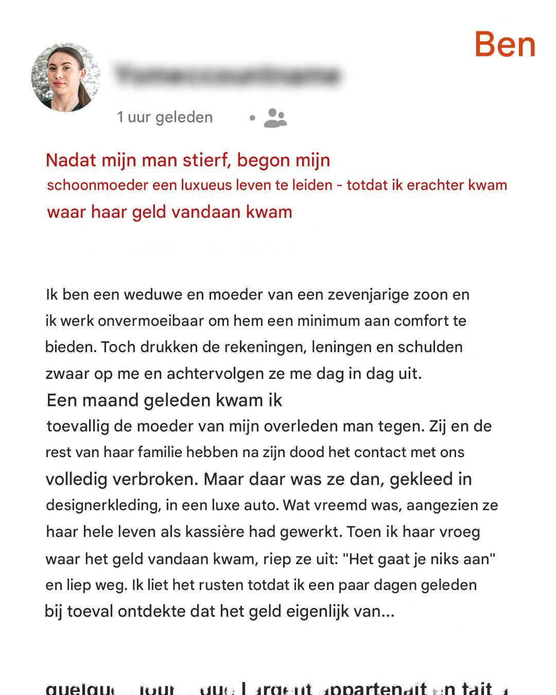 De dood van mijn man heeft mijn zoon en mij kapotgemaakt. Maar het verlies van de familie die ik voor de elf hield, was een ander soort wonder. Zijn moeder verbrak de banden met ons. Maar later zag ik haar gehuld in een rijkdom die ze nog nooit eerder had gehad. Ik voelde dat er iets mis was. Waar kwam zegt geld vandaan? De waarheid schokte mij.