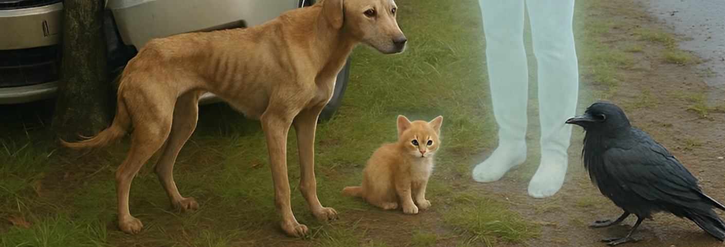Bij het laatste tankstation onderweg, stapte Aleksandra uit om te tanken. Net toen ze terug naar de auto wilde gaan, versperde een uitgemergelde zwerfhond haar het pad. Met een schuldig kwispelende staart keek hij haar aan, smekend, en kroop met neergeslagen oren naar haar toe, greep zachtjes haar broekspijp.