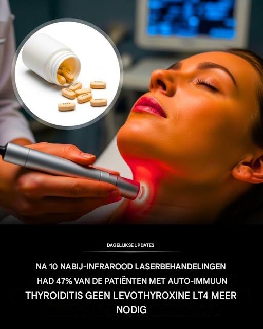 Recent onderzoek naar de gezondheid van de schildklier heeft de interesse gewekt van wetenschappers en artsen, nadat een klinische studie de effecten van nabij-infraroodlasertherapie op mensen met auto-immuun thyreoïditis onderzocht. De bevindingen waren opmerkelijk: na een reeks behandelsessies kon bijna 47% van de deelnemers onder medisch toezicht stoppen met levothyroxine .