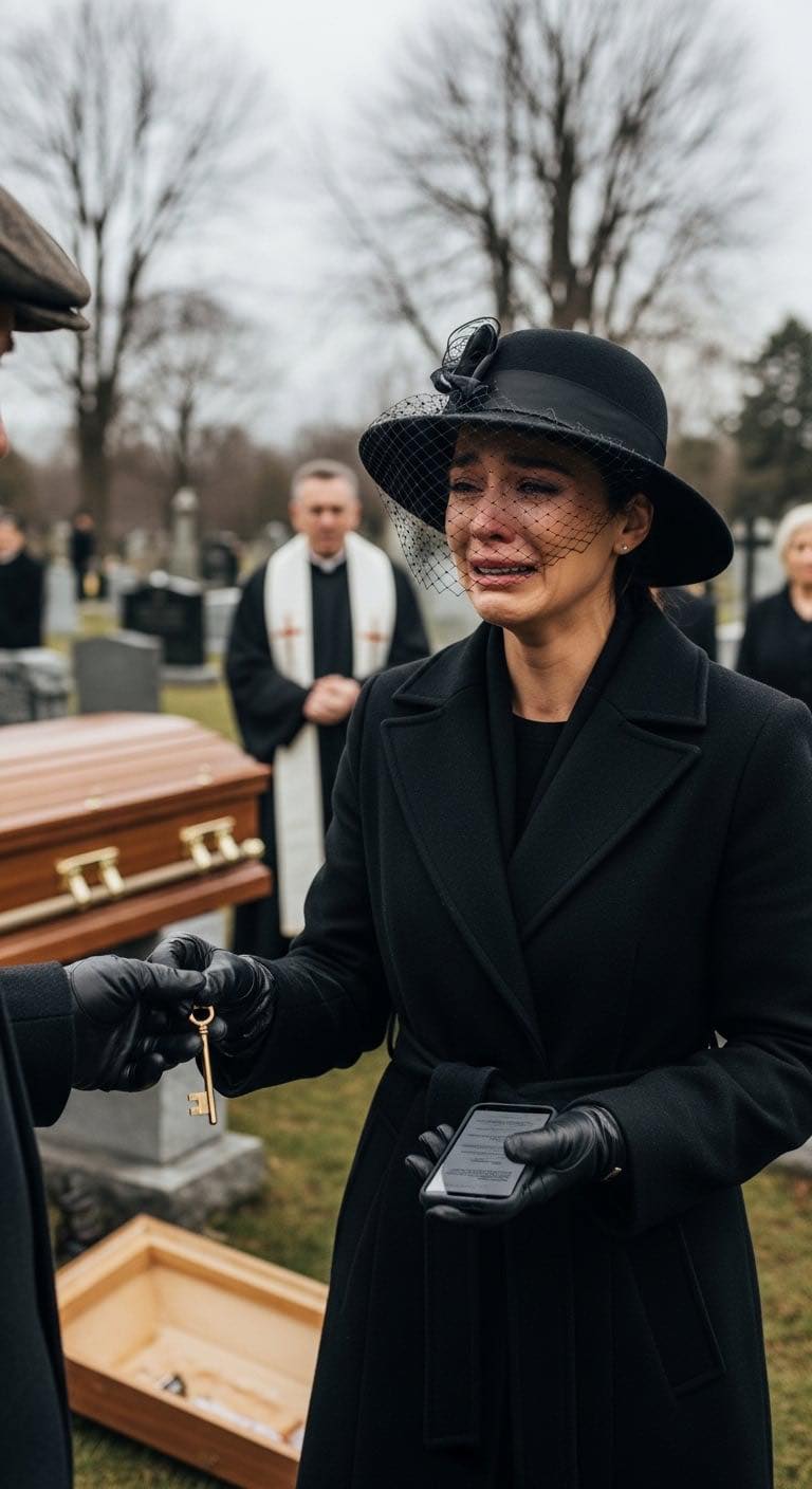 Mijn naam is Emily Carter , en als je me een week geleden had gevraagd hoe de allerergste dag van mijn leven eruit zou zien, had ik precies beschreven wat ik nu zag. Ik stond onder een verstikkende, grijze wolkendeken op de Oakwood Memorial Cemetery , rillend in een zwarte wollen jas die veel te zwaar aanvoelde voor de vochtige herfstlucht. We begroeven mijn moeder.