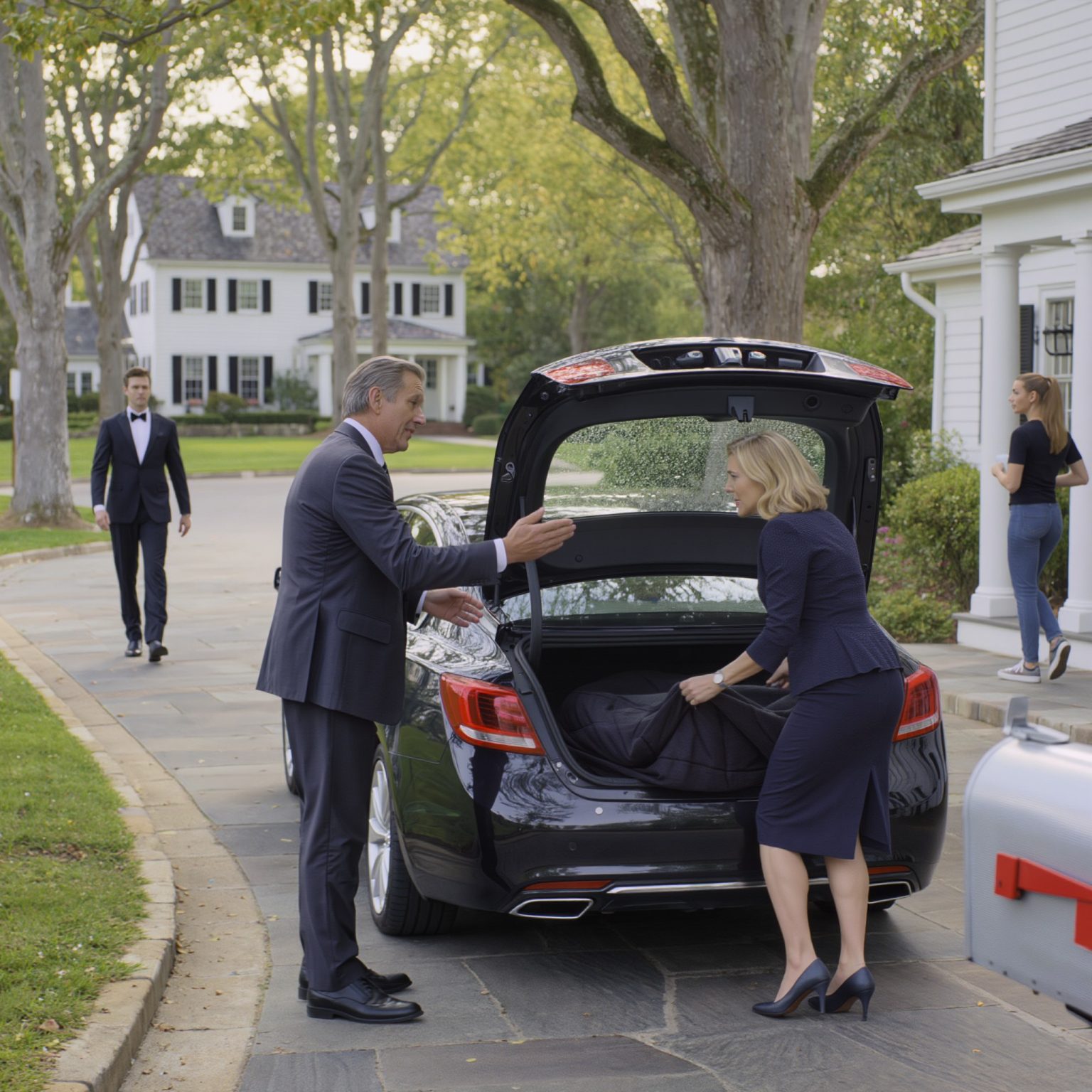 Op de ochtend van de bruiloft van mijn zoon duwde onze chauffeur me in de kofferbak en gooide een deken over me heen.