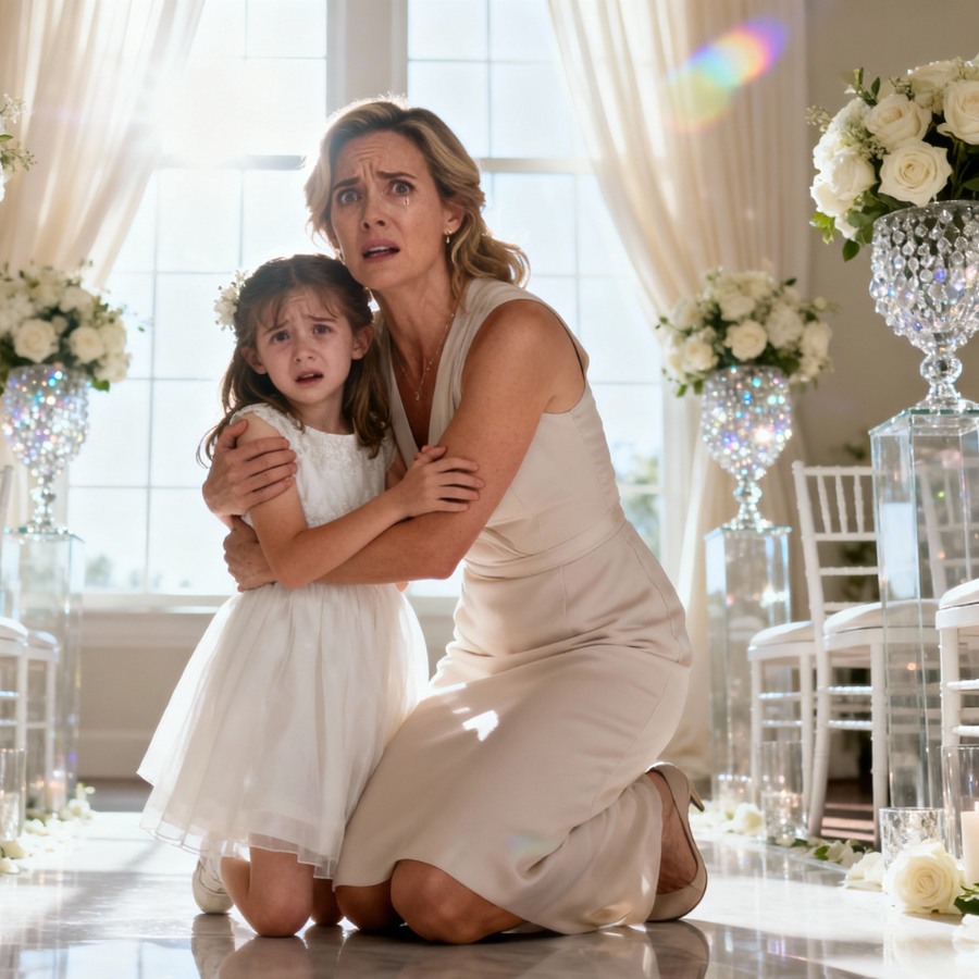 Toen trok mijn zus mijn onschuldige negenjarige dochter plotseling bij haar haar naar zich toe en schreeuwde: « Je moeder heeft mijn bruiloft verpest. » Ze sloeg Lily’s hoofd met al haar kracht tegen de muur en gooide haar vervolgens van het podium.