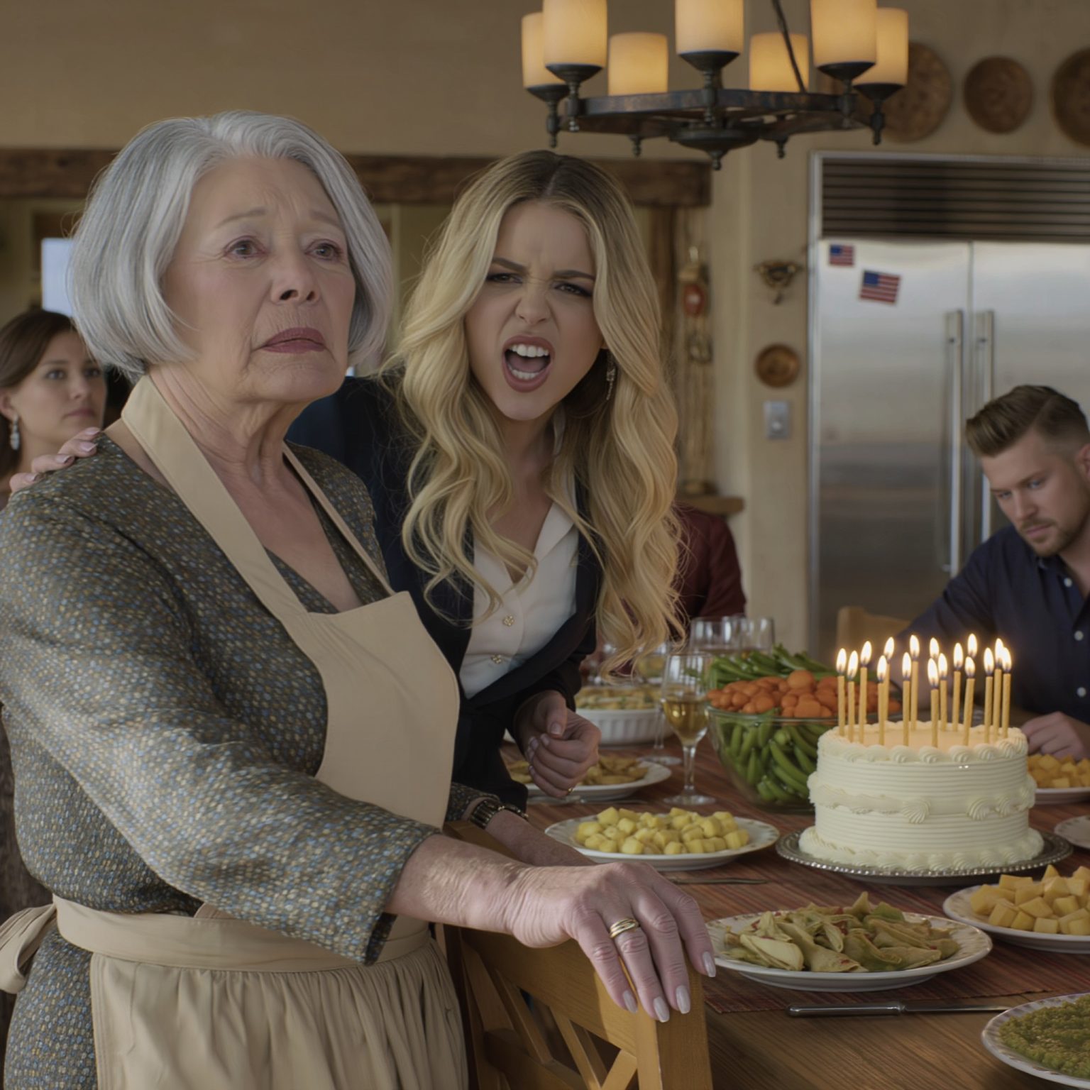 Ik stond daar nog steeds in mijn schort, met veertien uur werk op mijn schouders. Het was niet de eerste keer dat Chloe me opzij duwde, maar deze keer deed ze het waar iedereen bij was. Aan de tafel die ik had klaargemaakt. In het huis dat van mij was.