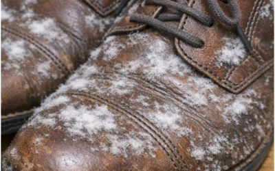 Ik heb schoenen tevoorschijn gehaald die ik de hele winter niet heb gedragen en ontdekte witte, pluizige plekjes op het leer. Wat is dat?