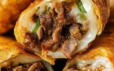 Knapperige Philly Cheesesteak loempia's uit de airfryer – Deze knapperige loempia's zitten boordevol mals rundvlees, gesmolten kaas en gebakken paprika en…