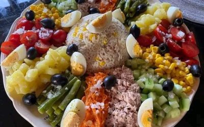 Rijstsalade met tonijn en maïs Maïssalade Aardappelsalade Verse bonensalade Cherry Tomaten Salade