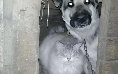 Een man bouwde een hok voor een zwerfzwangere hond, en al snel kwam er ook een zwangere kat
