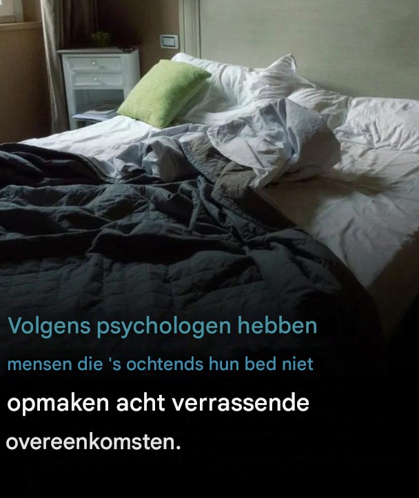 Volgens psychologe Leticia Martín Enjuto kan deze ogenschijnlijk onschuldige keuze — zorgvuldig de lakens vouwen of ze gekreukt laten — eigenlijk veel zeggen over je persoonlijkheid, mindset en emotionele patronen. Ze gelooft dat « achter elk eenvoudig gebaar een verhaal schuilgaat ». Een handeling die zo alledaags is als het niet opmaken van je bed kan psychologische betekenissen hebben die verband houden met je waarneming van structuur, controle en zelfexpressie.