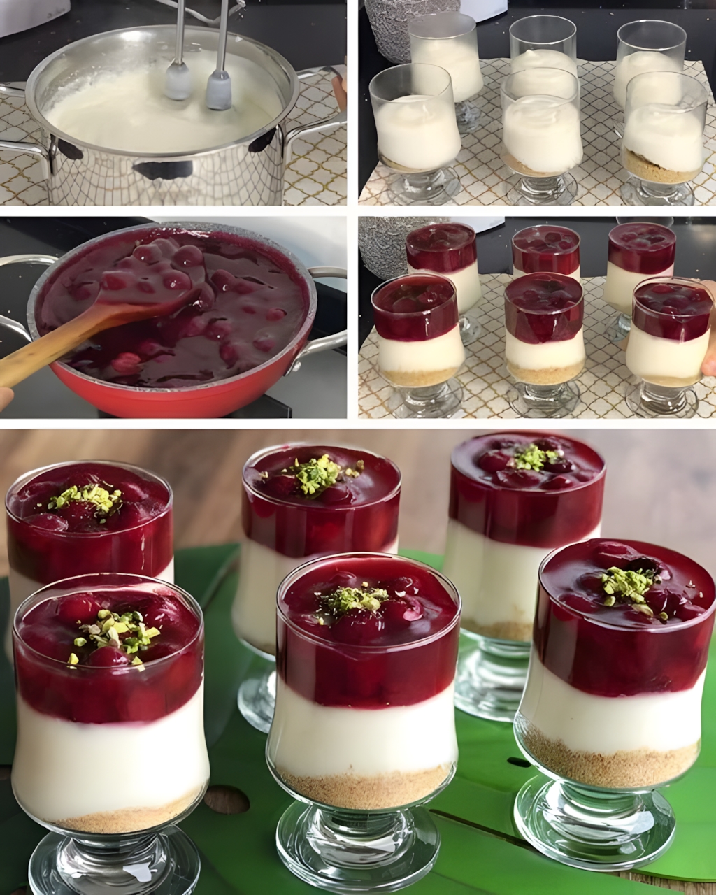 Dit prachtige kersendessert in een glas is een luchtige, romige traktatie met een krokante bodem en een frisse kersentopping. Perfect voor feestjes, een chique diner of een zoete traktatie zonder oven!