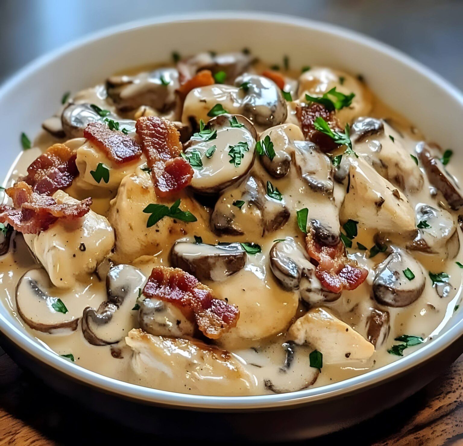Deze Creamy Chicken Bacon Stroganoff is de ultieme comfortfood! Een romige saus, knapperige bacon, sappige kip en heerlijke champignons zorgen samen voor een smaakvolle, luxe maaltijd. Perfect voor een doordeweekse avond of een speciaal diner.