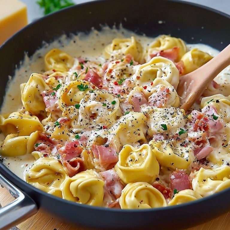 Romige tortellini met ham en Parmezaanse kaas is een eenvoudig en troostrijk Italiaans gerecht, perfect voor een snelle maar heerlijke maaltijd. De malse en subtiel gevulde pasta is omhuld met een romige saus van room en Parmezaanse kaas, terwijl de ham een zoutige maar zoete smaak toevoegt die perfect samengaat met de kaas. Dit gerecht is ideaal voor een familiediner, een snelle lunch of een gezellig etentje met vrienden.