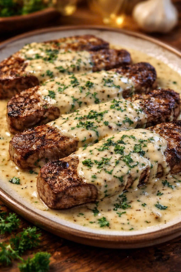 Een sappige runderfilet, overgoten met een romige blauwekaassaus die elke hap verfijnt. Een ideaal gerecht voor een verfijnd diner, zonder urenlange voorbereiding: een snelle schroeiing om de sappen te behouden, een aromatische deglacering en een perfecte saus, rechtstreeks in de pan bereid. Het contrast tussen de malsheid van het vlees en de intensiteit van de kaas creëert een heerlijk evenwicht, versterkt door een vleugje witte wijn en verse kruiden. Serveer met romige aardappelpuree of gebakken groenten voor een resultaat dat een toprestaurant waardig is, klaar in slechts enkele minuten.