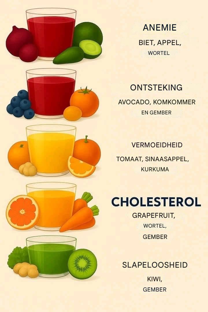💡 Laten we eens kijken naar de mogelijkheden. Onderzoek suggereert dat bepaalde groenten en fruit de gezondheid op een milde manier kunnen ondersteunen. Bij bloedarmoede is rode biet rijk aan ijzer, wat de aanmaak van rode bloedcellen kan stimuleren, terwijl appel en wortel vitamines toevoegen . Bij ontstekingen bieden avocado en komkommer hydratatie en antioxidanten, en gember kan zwellingen verminderen. Deze combinaties sluiten aan bij het traditionele gebruik van verse producten om vitaliteit te bevorderen, wat de nieuwsgierigheid naar hun effecten aanwakkert.
