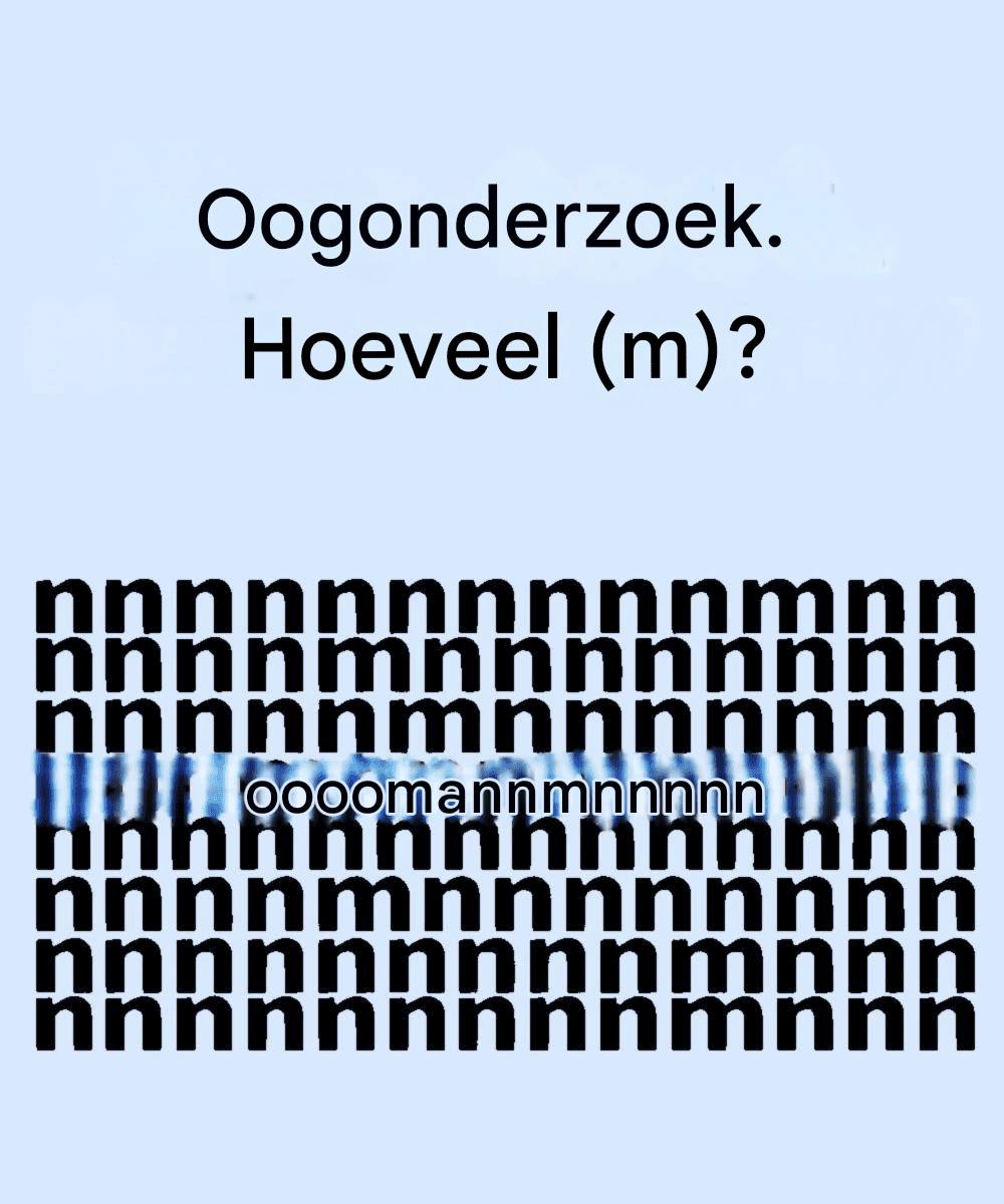 Op het eerste gezicht lijkt het raster eenvoudig genoeg: rijen en rijen kleine letters « n », maar daartussen zitten een paar slim geplaatste « m »s verborgen die gemakkelijk over het hoofd gezien kunnen worden. Deze test is ontworpen om aandacht voor detail, visuele waarneming en geduld te vereisen.