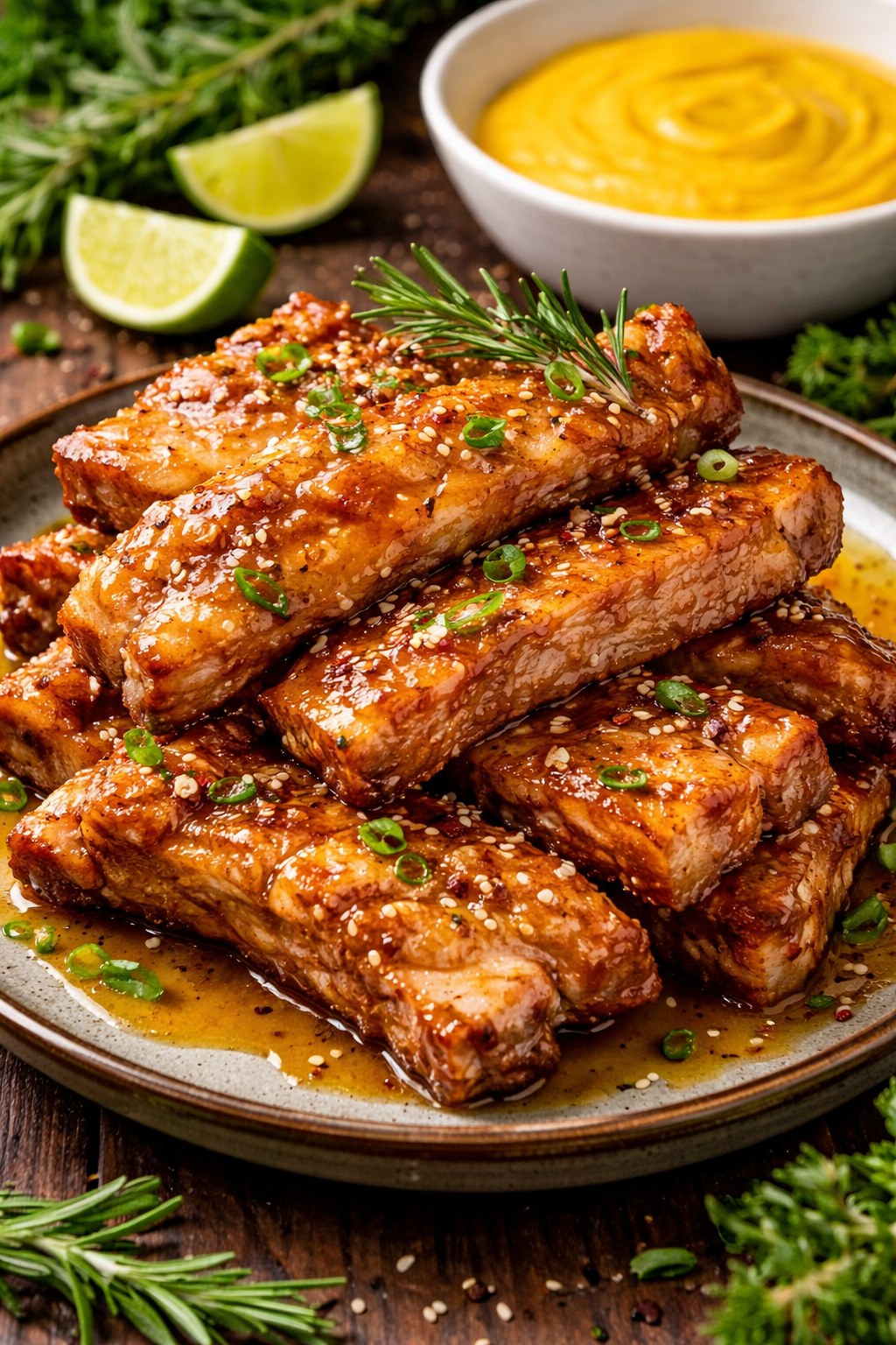 Ingrediënten voor spareribs in papillote met honing-mosterdsaus